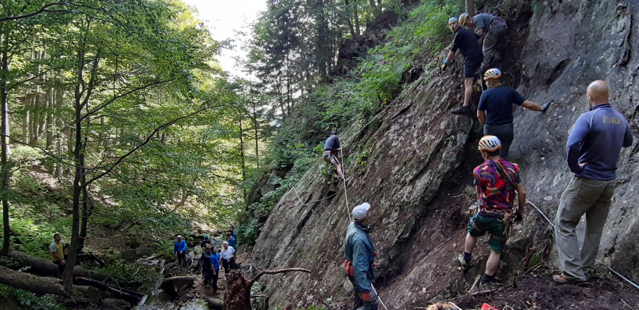 V sobotu 19.9.2020 sme spolu s chlapcami z HZS spravili nutnú údržbu na ferrate HZS po letnej sezóne. Na spodnom úseku sme spriechodnili zarastené časti, prepílili a odstránili spadnuté kmene stromov.