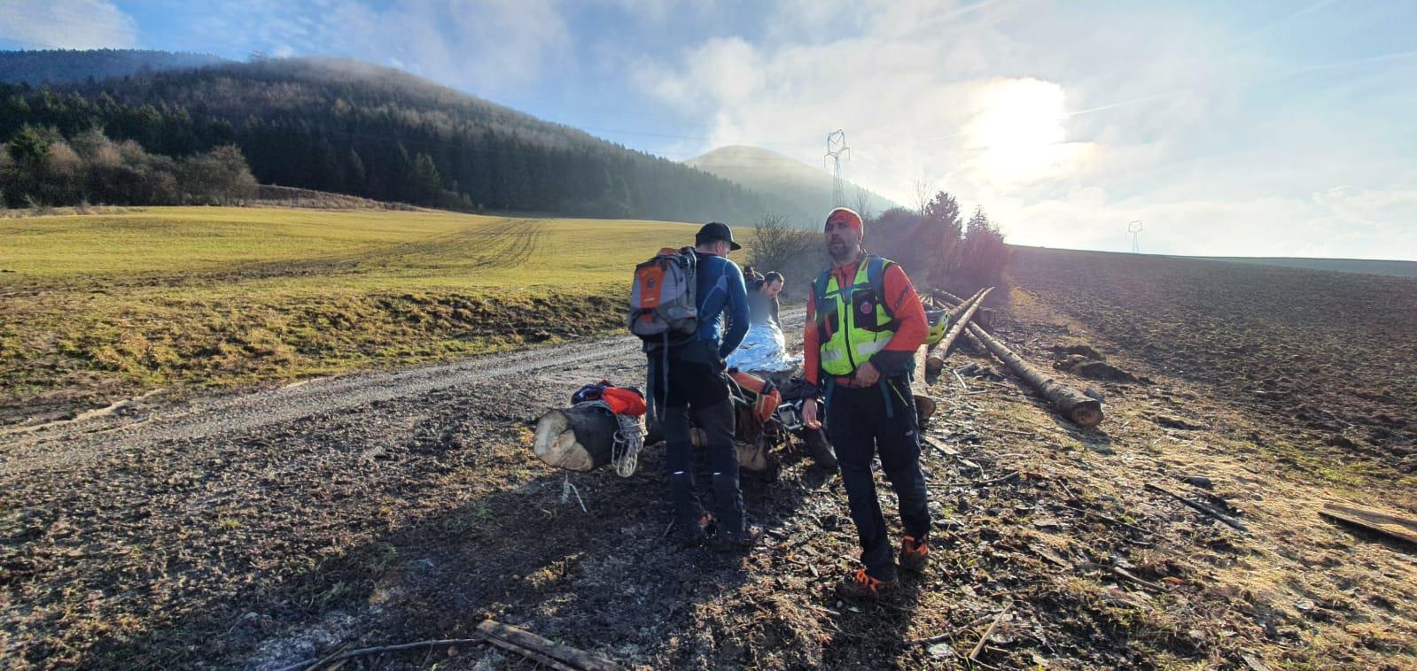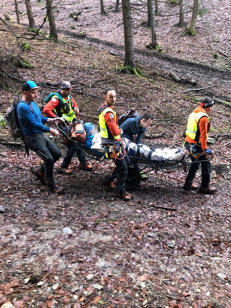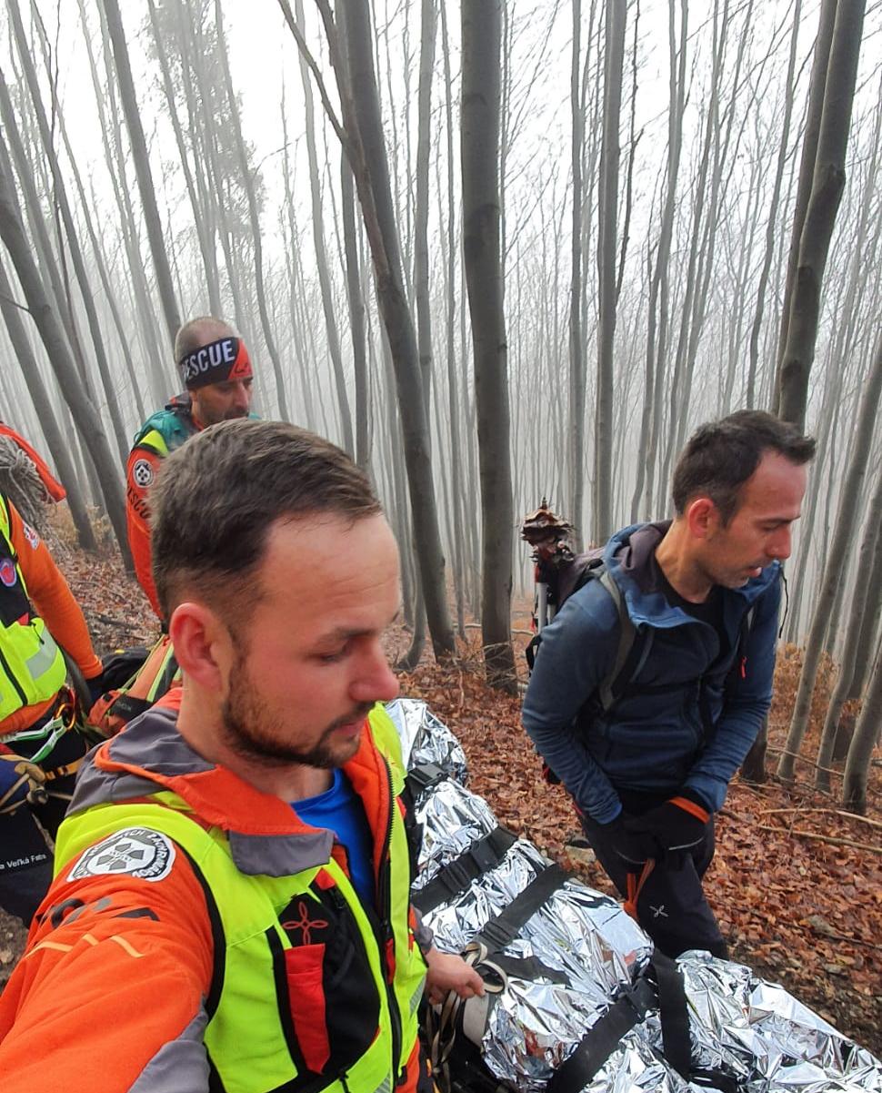 Do akcie spolu s HZS vyrazili traja naši záchranári. Po vyšetrení, zateplení a podaní intravenóznej liečby nasledoval transport v náročnom blatistom teréne s použitím nosidiel UT 2000.